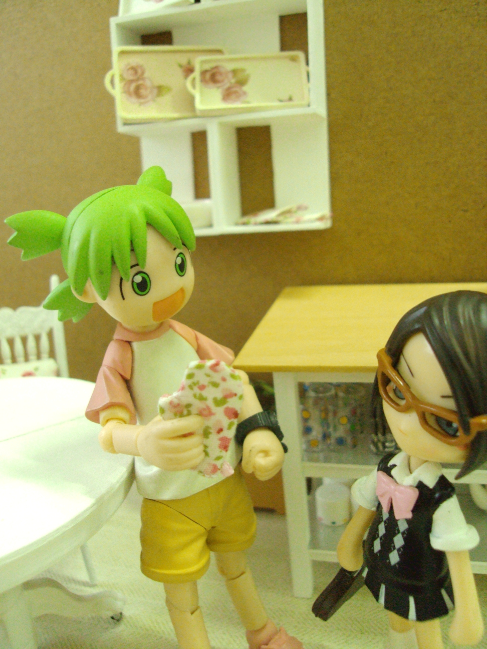like me, Yotsuba has pretty big hands....i don't know the name of this Pinky St char (can someone enlighten me?)...but she models how the mitts are wearable :) that's my personal set of course heheh.